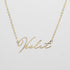 Customize it with your name or a meaningful word, and choose from five stylish chain options to create a piece that’s uniquely yours. Whether worn solo or layered, the Violet necklace is a timeless jewelry essential and a thoughtful gift.